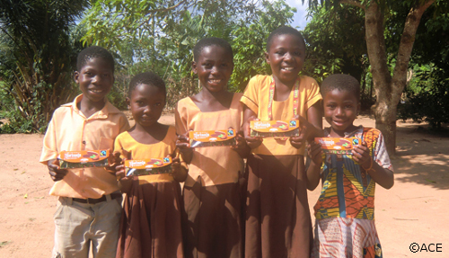 支援国のひとつがガーナ。NGO団体のACEが活動する村では、子どもたちがカカオ畑で働くのではなく、ちゃんと学校へ通えるようにって取り組んでいるそうです。