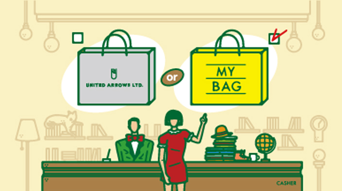 買い物すると店のショッピングバッグに入れてくれますよね。ユナイテッドアローズのロゴマークの入ったショッピングバッグがウレシくて、自慢げに持ったりして。実は、このショッピングバッグをもらわないと、環境にいいことが起こるんですよ!