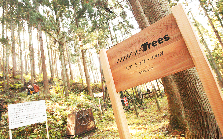 2007年設立。一般社団法人more trees(モア・トゥリーズ)は、「もっと木を」というコンセプトのもと、音楽家の坂本龍一を代表とし、2007年に設立された森林保全団体。「都市と森をつなぐ」をキーワードに、森づくりを推進しながら、森の持つ保水力や生物多様性などの多面的な機能の回復を目指している。私たちが生活していくうえでどうしても排出してしまうCO2を森が吸収するCO2で埋め合わせる「森林 由来のカーボンオフセット」の普及をはじめ、国産材などの様々な「森のめぐみ」を利用した商品やサービス、体験ツアーなどを企画・展開することで都市と森、山村との交流にも努めている。