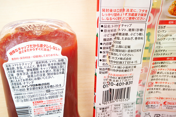 先程も話に上がりましたが、ハインツはにんにくを、カゴメはたまねぎを原材料に使用しています。ケチャップだけを味見したときに感じたカゴメの「まろやかさ」、ハインツの「はっきりとした味」がそのまま反映された印象です。
