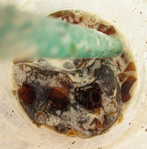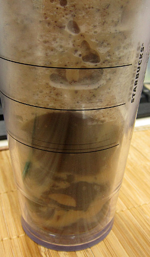 最初はフラペチーノとコーヒージェリーの味ですが、少しずつかき混ぜながら飲むと、味も食感も変化します。