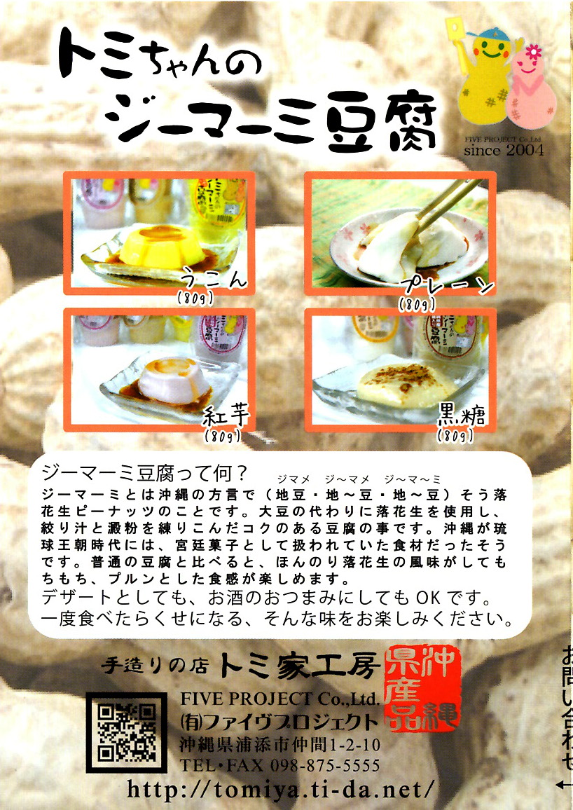 トミ家工房さんの豆腐はジーマーミ豆腐。ジーマーミとは沖縄の言葉でピーナッツのこと。