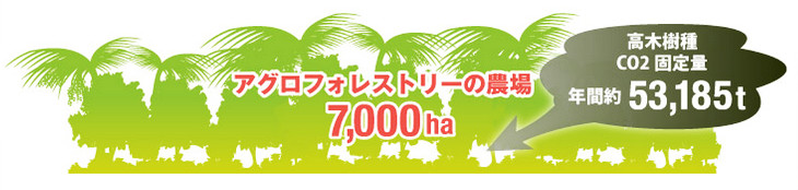アマゾン河の河口から南に約230kmのところに位置するトメアスでは、アグロフォレストリーによって、約7,000haの荒廃地が再生され、 年間45,000tものCO2を吸収しています。