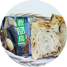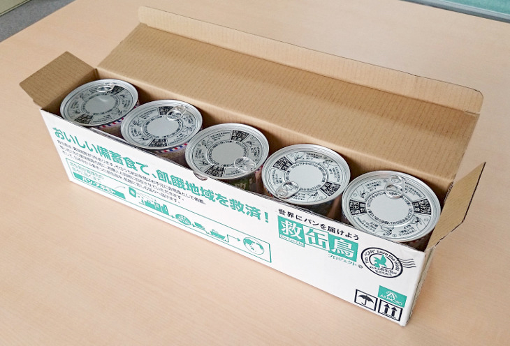 そのパンは、パン・アキモトさんが製造・販売している「救缶鳥5缶セット」。