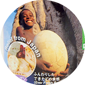 - 備蓄から2年後、義援物資として国際貢献に役立つ。残り約1年の賞味期限の間に、日本中から回収・輸送され、飢餓に苦しむ国々へ届く