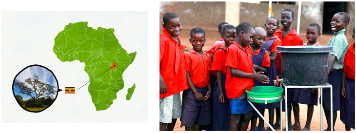 - 対象となる衛生製品の売上の1%を、日本ユニセフ協会を通じて寄付し、ウガンダで展開する手洗いの普及活動の支援