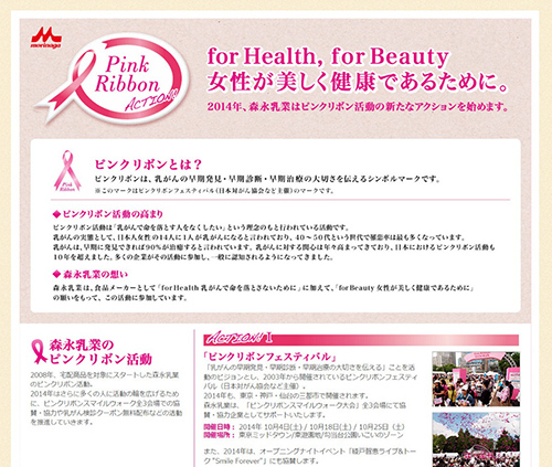 森永乳業さんでは、宅配商品を対象にしたピンクリボン活動を2008年よりスタート。