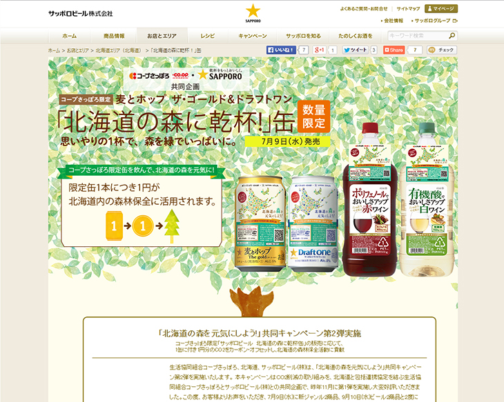 そんな人気のビールを飲むたびにカーボン・オフセットに参加できてしまうというのが、コープさっぽろと北海道、サッポロビールによる「北海道の森を元気にしよう!」キャンペーン。コープさっぽろ限定で行われたキャンペーンです。
