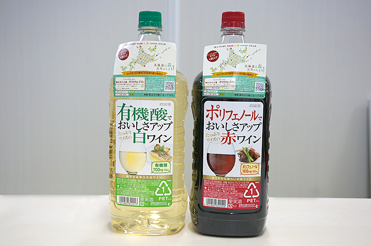 ワイン2商品(有機酸でおいしさアップ白ワイン、ポリフェノールでおいしさアップ赤ワイン)。