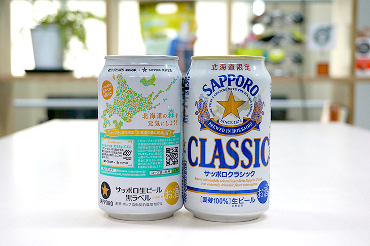 - サッポロクラシック、サッポロ生ビール黒ラベル ※コープさっぽろ限定「北海道の森に乾杯!」缶