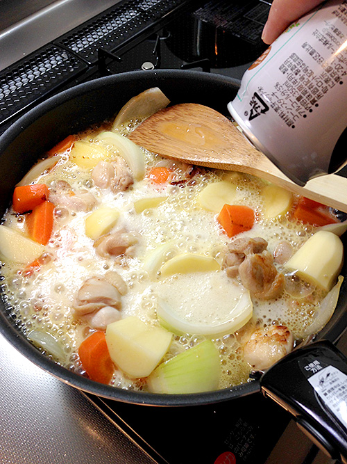 鶏肉のビール煮は、発泡酒や第3のビールではなく、ビールでないと美味しくできないので、惜しげも無く投入。