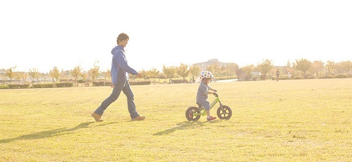 走る、体を傾けて曲がる、足を踏みしめて、止まる。子どもが日常的に備えている動き。その延長にストライダーがあるため、黙って手渡しただけで、乗れる。自由に乗るうちに、バランスをとることを自然に覚えたようです。