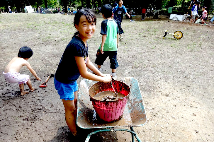 大人は禁止するのではなく、ともに考える。「子どもがやりたいことを思うままにできる遊び場」づくりをめざして、地域の母親や住民が主体となり、行政とも協働しながら運営。現在、全国で約400団体が活動しています。