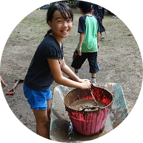 子どもは自分たちで、木や土、水、原っぱという自然環境のなかで、遊びをつくりだしていく。