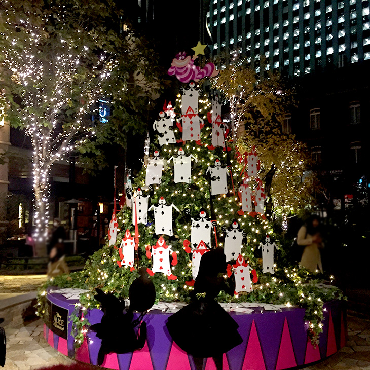 今年は中庭に不思議の国のアリスをテーマにしたクリスマスツリーが飾られています。