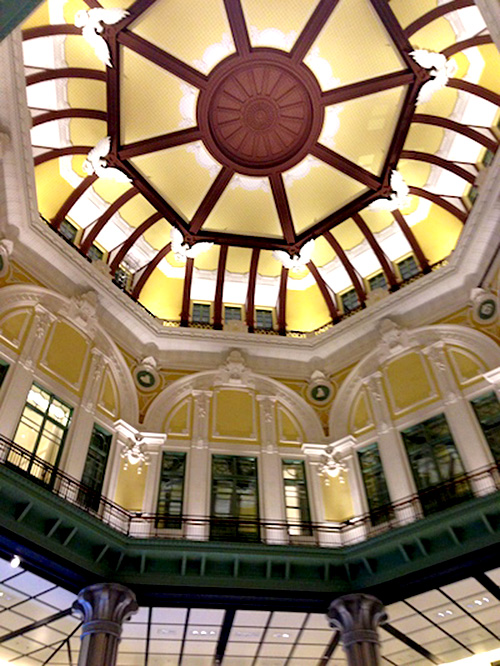 駅構内から見上げるステーションホテル。レトロな時代にタイムスリップしたかのよう。