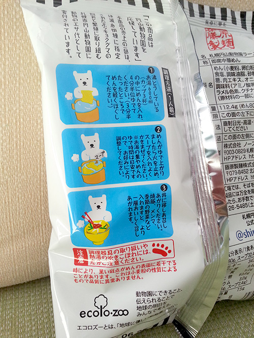 白クマラーメンはその売上の一部が、絶滅危惧種に指定されたホッキョクグマ(以下 白クマ)の飼育と繁殖に取り組む札幌市円山動物園に寄付されるそうです。
