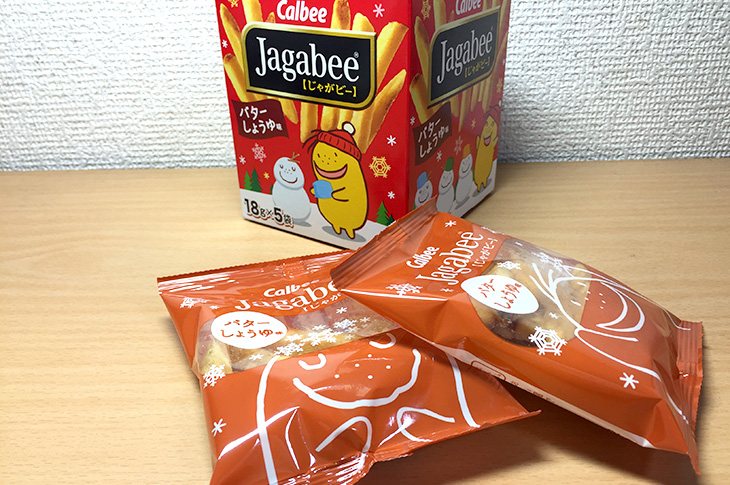 パッケージには「じゃがビー」のキャラクター「ポッタ」。雪遊びしているイラストがなんとも可愛いですね。箱から出して、袋を開けてみると、じゃがいもを揚げた香りがふわっと広がります。