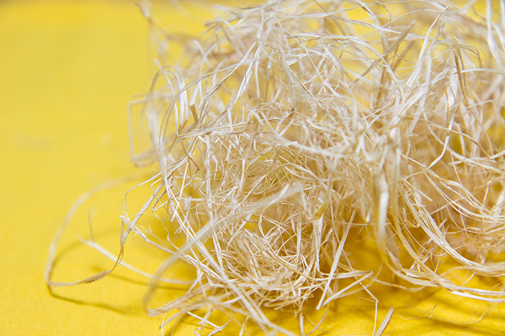 これがバナナの茎から取った繊維です。これを加工して紙にします。