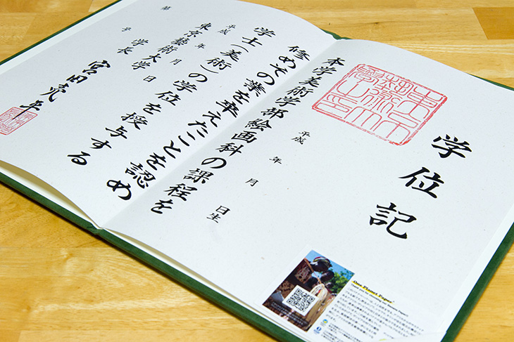 証書ホルダーもバナナペーパーで作ったものが用意されています。もちろん、色や箔押しなどは学校に合わせたものとなっています。