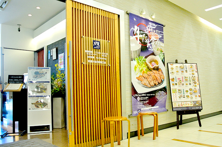 ということで3階まで上がると、入り口には大きな牛たん定食の垂れ幕が!