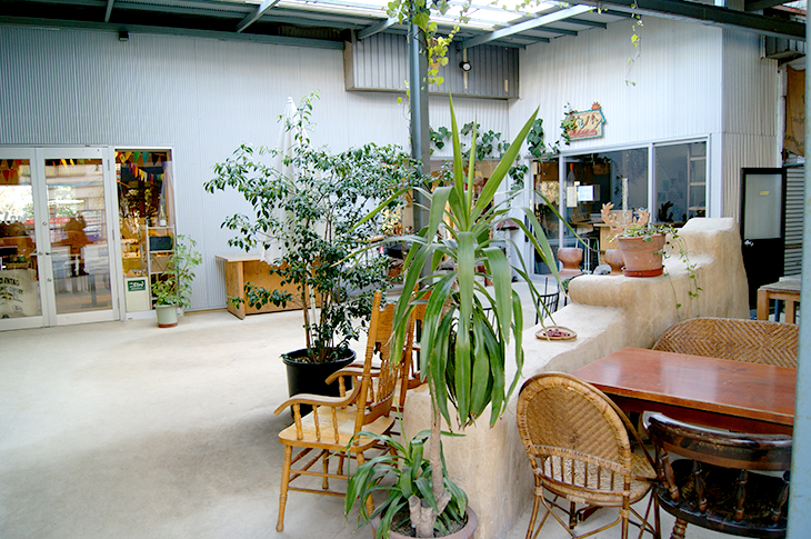 粘土細工のような手作り感あふれる内装は、ワークショップ形式でお客さんも参加して仕上げたもの。ストローベイル(麦藁)や珪藻土など、断熱性の高い自然素材が使われています。お洒落なだけじゃなく、エコ!店内には、小さなお子さんを連れたお母さんたちの姿も目立ちます。