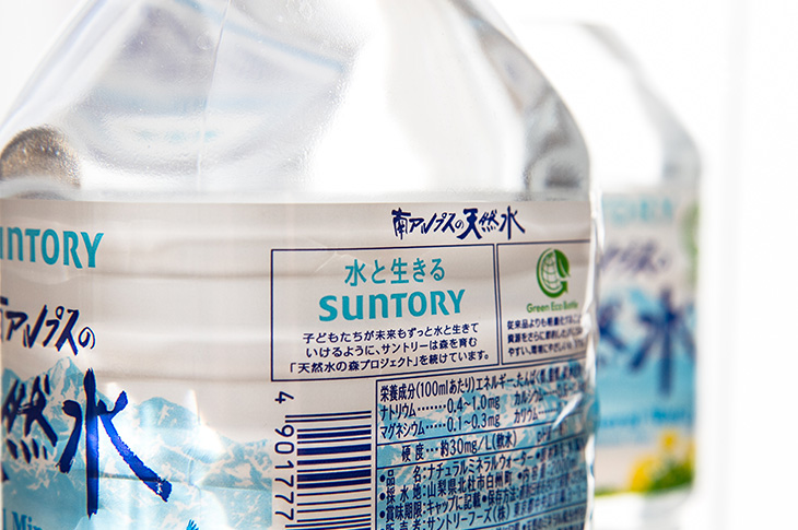 天然水のボトルにも「天然水の森プロジェクト」について記載されています