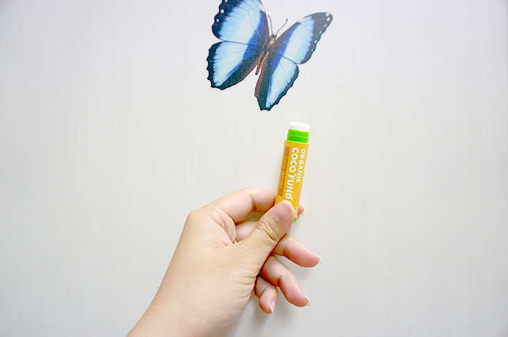 今、健康や美容で話題のココナッツオイルの入った、フルーティーな香りのリップクリーム「オーガニックココファンドリップ」です。
