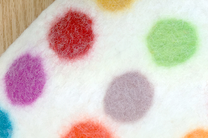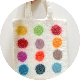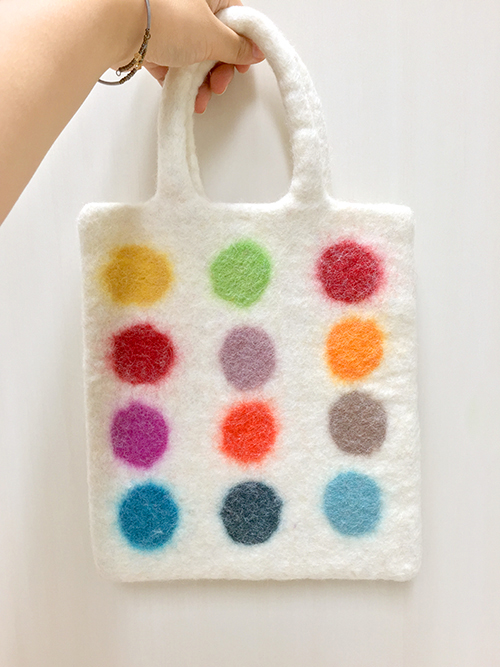 ふわふわの原毛フェルトと明るいドットで、シンプルなデザインも魅力のひとつ。