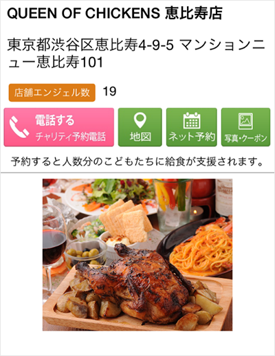 ちょうどいいので、このテーブルクロスから予約しちゃいましょう。「恵比寿」で検索をかけてみると7件ヒットして、写真の「QUEEN OF CHICKEN 恵比寿店」に決めました。