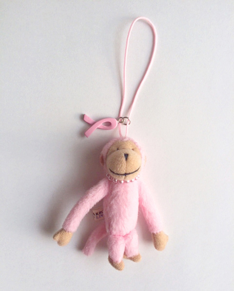 今回は、雑貨や小物を買うだけで乳がんの啓発活動に参加できると知り、早速ユナイテッドアローズ 二子玉川店へダッシュ!ピンク色のモンキーを発見した瞬間に、即購入♡愛くるしい表情に、女性らしい色合い…さりげなく飾られているピンクリボンがオシャレで、さらには、胸元にあるパールも可愛らしく、普段頑張っている自分へのご褒美も兼ねて買っちゃいました♡
