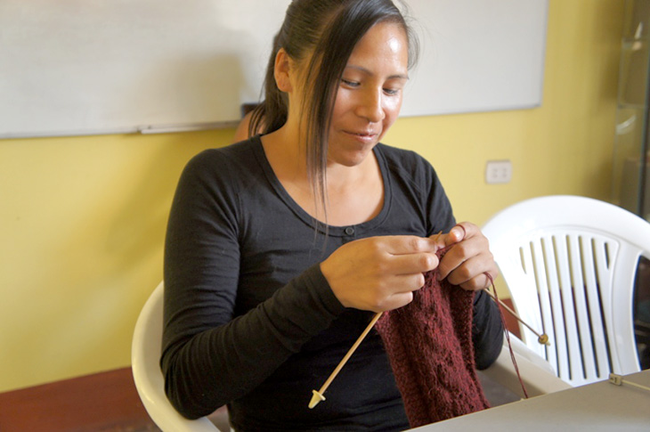 農村部で育ったペルーの女性たちは日常的に編み物をしていて、母から娘へと編み物の技術が自然と伝えられていました。“ペルーの宝”と呼ばれる高品質なアルパカ糸からニットを編むことで、女性に収入を得る機会が生まれたのです。玲子さんの指導するMujeres-Unidas(ムヘレスウニダス)の活動は、2003年から続いています。