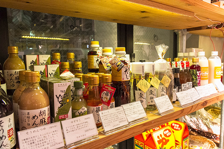 日本各地で生産されている各種調味料も扱っています。産地も種類も多彩で、思わず色々買い込んでしまいそうです。いつもの食卓でも、いつもとちょっと違う調味料を使うことで楽しくなりそうですね。