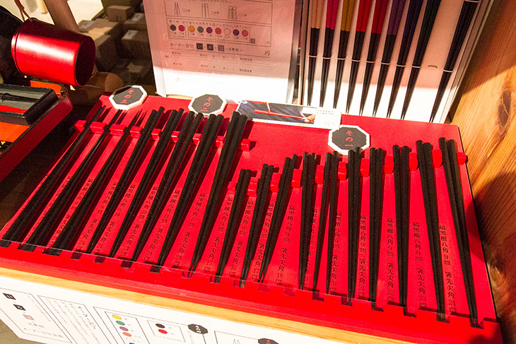 サイズや色をオーダーすることができる箸もありました。普段使うものだからこそ、他とは少し違うものを、という気持ち、わかります。