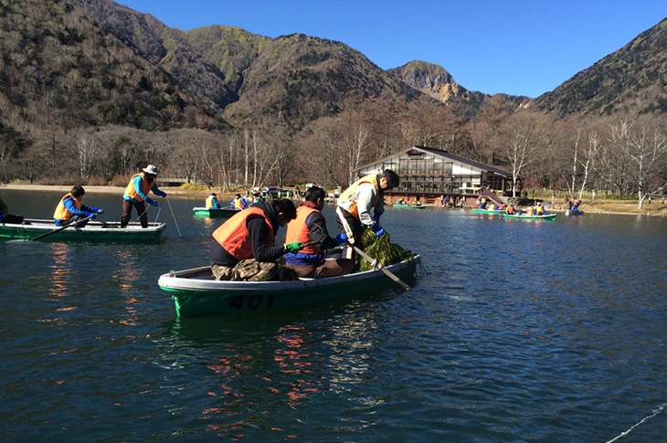 その中でも、寄付以外にも伊藤園の社員が自然環境や世界遺産を含む文化財の保全に参加している場所があります。その一例が前述の北海道と栃木なのですが、北海道遺産の積丹半島・島武意海岸(しまむいかいがん)の清掃活動や、栃木・奥日光湯ノ湖における、外来種の水草コカナダモの除去作業なども行っています。
