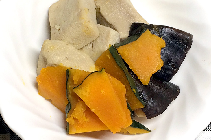 シンプルなメニューにしたかったので、あとは高野豆腐とかぼちゃの煮物・玉子とキャベツのお味噌汁をつくって、食卓に並べてみました。もちろん、どちらも、「ほんだし」を使っていますよ。(生活感がでてしまっていますが…(笑))