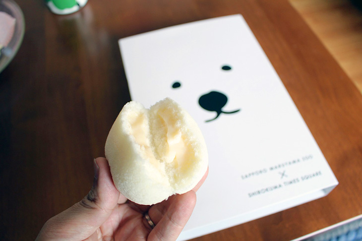 また、クリームも元祖とは違います。元祖はカスタードクリームですが、しろくまバージョンは北海道産の牛乳を使用したミルククリームを採用、餡も北海道産の小豆を使用しています。