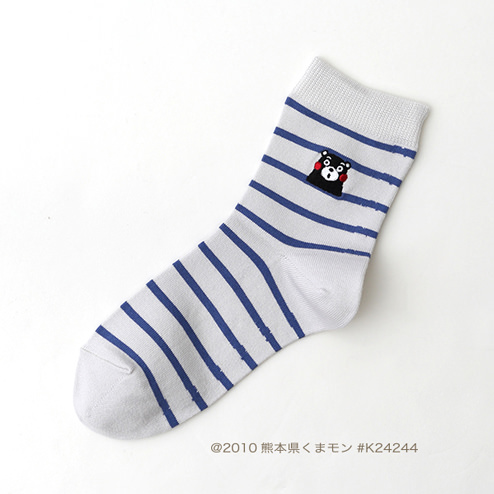 くまモン刺繍入りTシャツボーダー柄ソックス 10:グレー スモークブルー