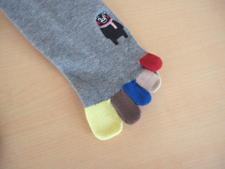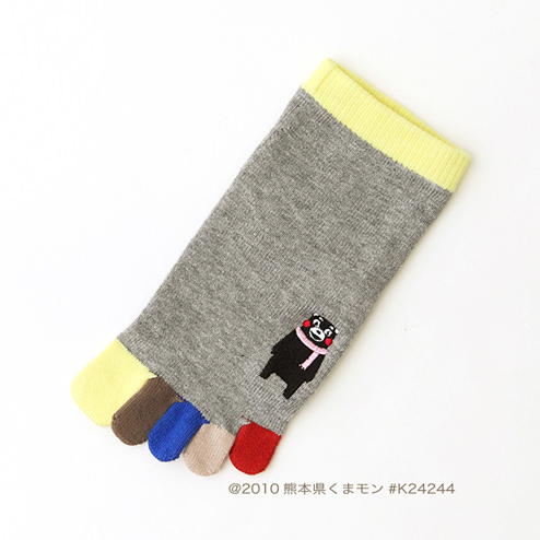 くまモン刺繍入指先レインボー5本指ソックス 15:グレーモク+クリーム