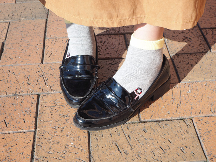 無地なぶん、ソックスの色によってはくまモンが目立ちかなりキュートな足元になるので、