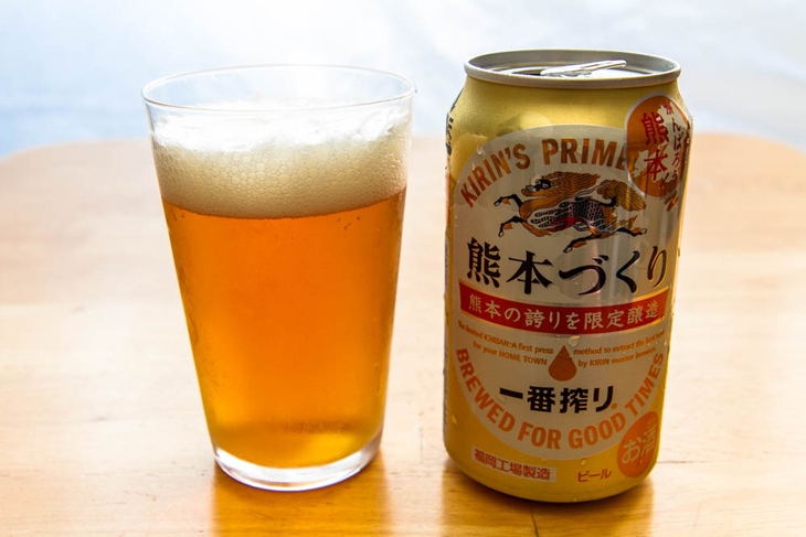 「熊本特有の濃い味の料理にも合うように、熊本県産の米、九州産の麦芽を使用し、すっきりと飲みやすく、あとしまりのある味わいで、“火の国”をイメージした赤い液色が特長です」とのことです。
