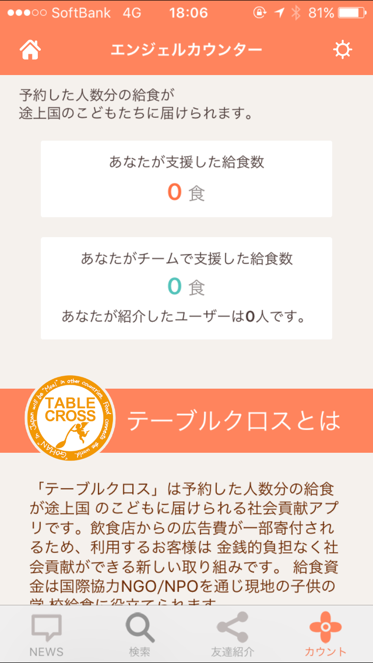アプリを紹介した友達が、さらにアプリをつかってお店を予約すると”チームで支援した給食数”も回ります。