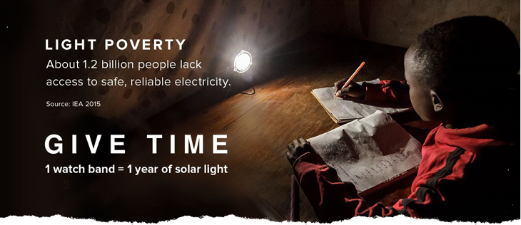 TOMS for Apple Watch Bandsを1つ購入するたびに、健康で安全な暮らしのために光を必要としている、電気の通っていない 途上国に光(ソーラーライト)を1つを贈ります。