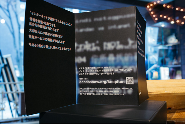 世界中で売れた「エラー 404」の売上のうち、消費税と製造原価を除いた全額として、25万ポンド(日本円に換算すると約3,500万円)を目標に、このキャンペーン限定で設立するデジタル・ファンドを通してAccess Nowをはじめとする、世界中でインターネット上の権利を守る団体に寄付する予定とのことです。