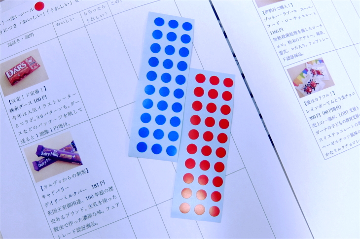 こちらの投票シートを用意し、「もらったらうれしい!」「おいしい!」の2ジャンルでチョコをチョイス。さらに率直なコメントも書いてもらいました。