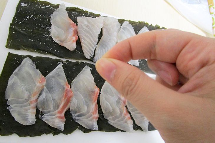 昆布…2枚 真鯛(生食用)…1サク 塩…適量