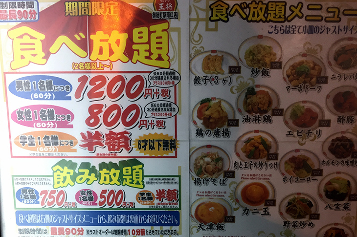 案内をしている店員さんの会話で謎が解けた。ここは王将でも数少ない「食べ放題・飲み放題」店舗なのだ。