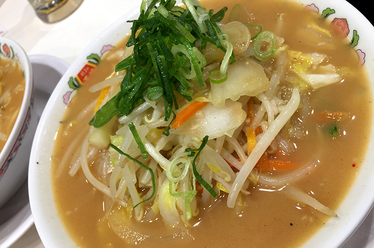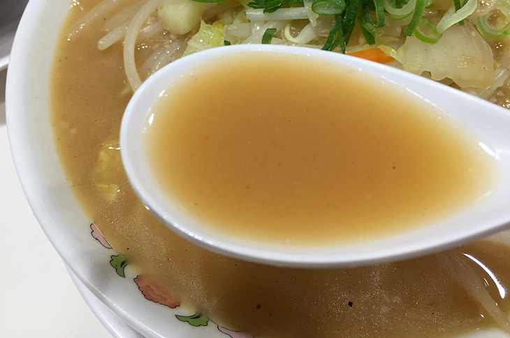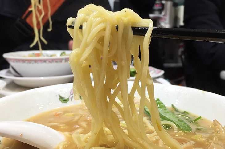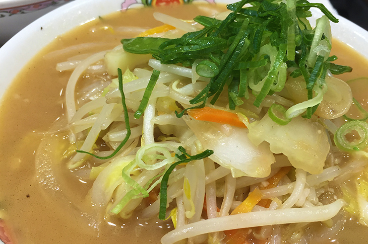 醤油ベースのスープに野菜の甘みがしっかり出ている。ショウガも効いていて、しっかりとしたコクがありながらあっさりとした飲み口で、男子も女子も満足させるであろうバランスはなかなかに絶妙。