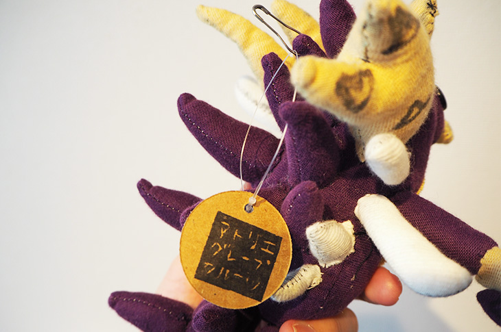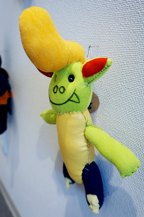 こだわりの強い秋場さん、制作に使用する生地は色々試した結果、Tシャツ用の綿のニット地がベストということに落ち着き、目はぬいぐるみ用ではなく洋服用のボタンに決まっているのだそう