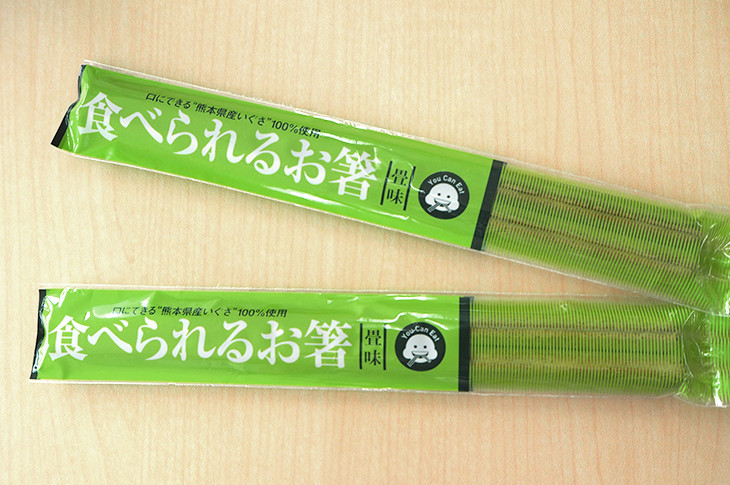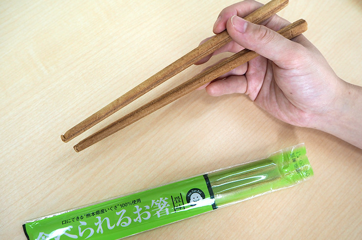それもそのはず。「食べられるお箸」は、小麦粉、砂糖、鶏卵、そして畳の材料である「いぐさ」で出来ているそう。
